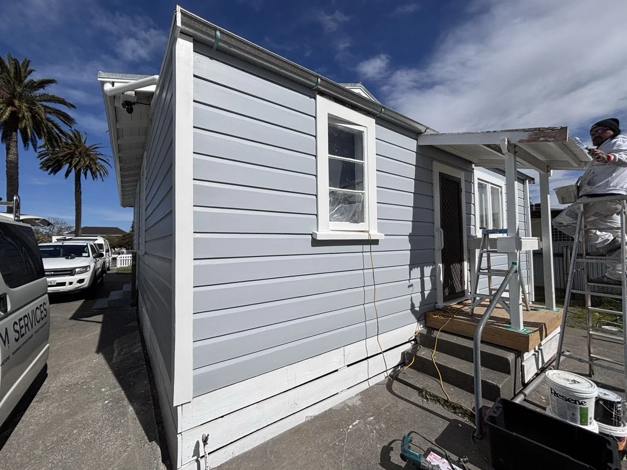 The result is a crisp, modern look that protects the weatherboards from the Hawke’s Bay sun and sea air — proof that thorough prep and quality products make all the difference.